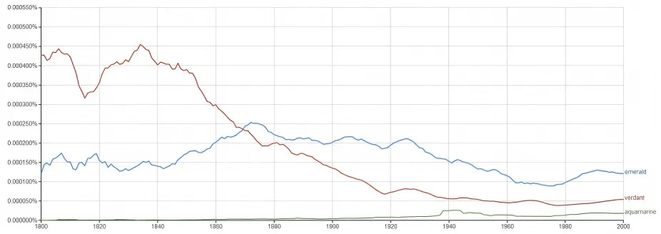 Recent corpus studies of English have begun to quantify such semantic shifts. For instance, analyses using Google Ngrams or the Historical Thesaurus can pinpoint the emergence of senses like “green-eyed monster” or “greenback” [
