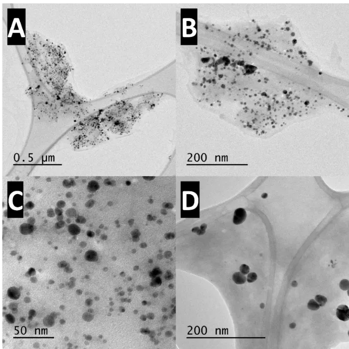 C, are relatively uniform in size, predominantly ranging from 3 to 11 nm, whereas the Citrate-AgNPs in