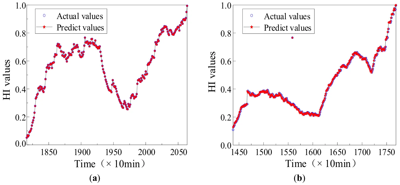 34] based on the gated recirculation unit (GRU) prediction method for rolling bearing performance degradation based on Optimal wavelet packet and martensitic distances accurately predicted the bearing degradation trends, which helped the maintenance personnel to keep track of the health of their equipment. Huang et al. [