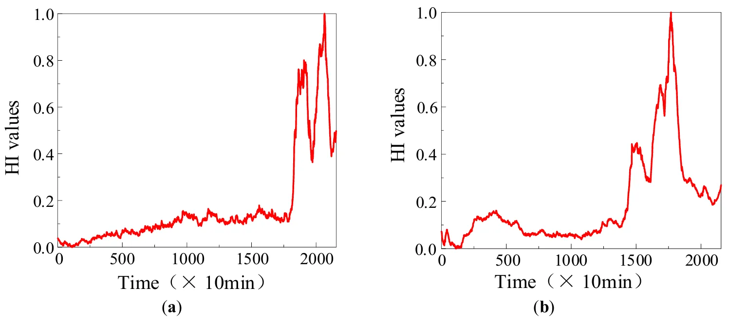 Equation (2), the smaller the value of the smoothing parameter, the more it is affected by the observations at the historical moment. Since EWMA is used to smooth the HI, the influence of historical data needs to be considered more. Therefore, the value of $$\mu$$ is set to 0.2 [