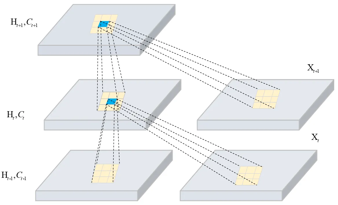 49], combines the advantages of CNN and LSTM, which can effectively solve this challenge. Unlike traditional LSTM, CLSTM extracts spatial features in time series data by convolutional operations at each time step. In addition, CLSTM makes the network’s generalization ability more excellent by adding a convolution operation, which improves the prediction performance of the network.