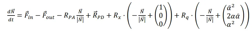 τpump (reactor pumpdown time constant) and $$\vec{F}_{in}$$ is the inflow [molec/s] set in the experiment. The values $$\vec{N},R_x,R_q,\vec{F}_{out},\vec{F}_{in},R_{PA}$$ depend on time.