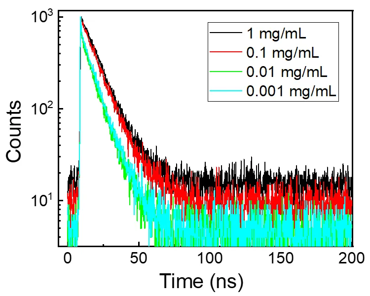 . Fluorescence decay curve of H-CDs in ethanol solutions at different concentrations.