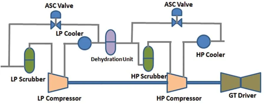 Instrumentation across stages, including flow, pressure, and temperature transmitters, feeds into the Uninterruptible Power Supply (UCP) for anti-surge control. Maintaining low first-stage suction pressure is essential for meeting oil vapor pressure specifications. The combined discharge pressure from the second and third stages reaches approximately 45 barg.