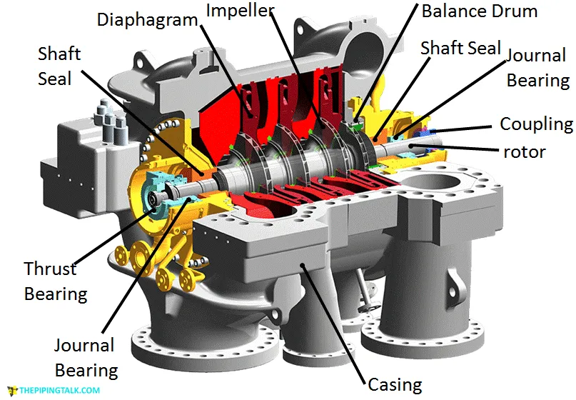 Centrifugal compressors are critical turbomachines extensively used in oil and gas, petrochemical, and power generation sectors to compress gases to high pressures. Their functionality hinges on the transformation of kinetic energy—imparted by a rotating impeller—into pressure energy through a diffuser. Among the various configurations, MAN Turbo barrel-type compressors stand out due to their high efficiency, modular design, and capability to handle discharge pressures up to 800 bar and flow rates exceeding 200,000 m