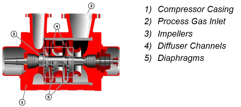 This article aims to bridge that gap by examining the cascading effects of strainer blockage on compressor performance and mechanical integrity, focusing on MAN Turbo barrel-type compressors. () The research methodology involves field data collection, chemical analysis of strainer deposits, and vibration monitoring across multiple operational scenarios. Section 1 outlines the key design parameters of the compressors under study. Section 2 details the research methodology, including instrumentation and data acquisition techniques. Sections 3 and 4 presents the results, followed by a discussion in Section 5 that interprets the findings in the context of existing literature. Finally, Last section concludes with recommendations for predictive maintenance and future research directions, supported by a comprehensive list of references.