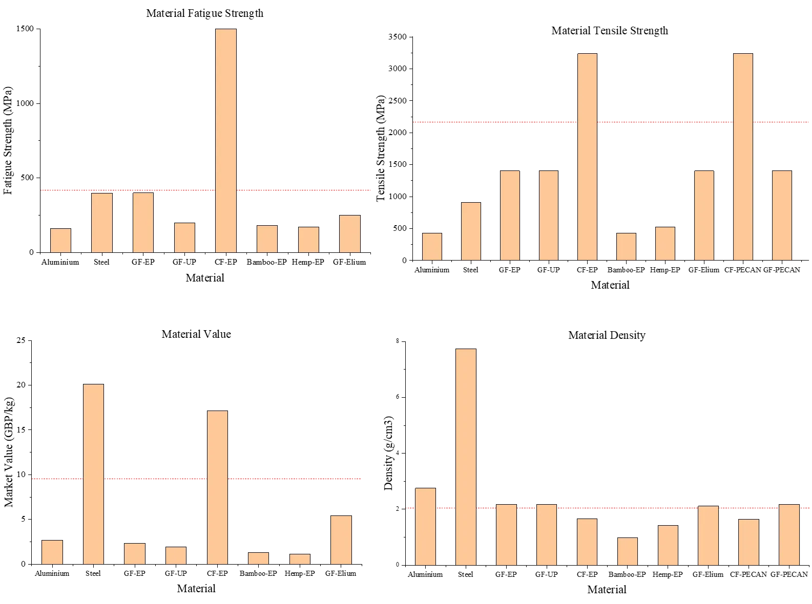 37]. Compared to the commonly used material, GF-EP, all other quality indicators are similar except for a lower fatigue strength [