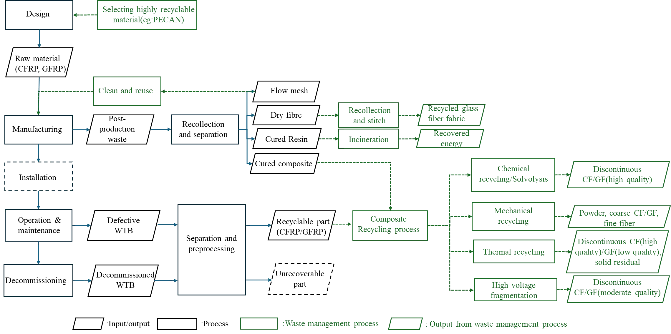 25]. Moreover, clarifying the specific matrix and fibre material used to make the composite for WTB will help decision-makers identify or design an appropriate end-of-life plan [