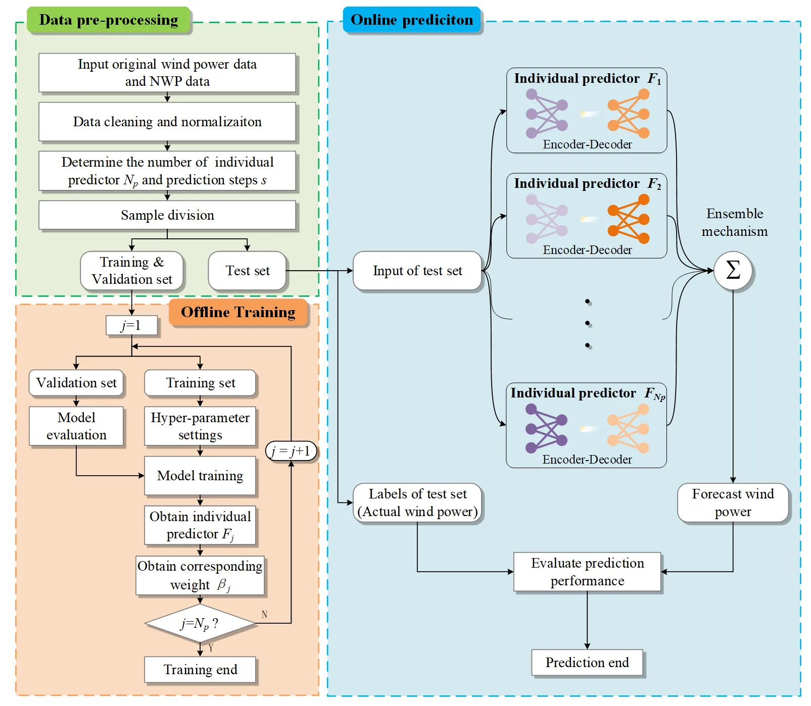 18], the wind power was predicted by combining the least square support vector machine, extreme learning machine (ELM), and the variance strategy to determine the corresponding weights. including overfitting, incorrect model specifications, and high sensitivity to initial parameters