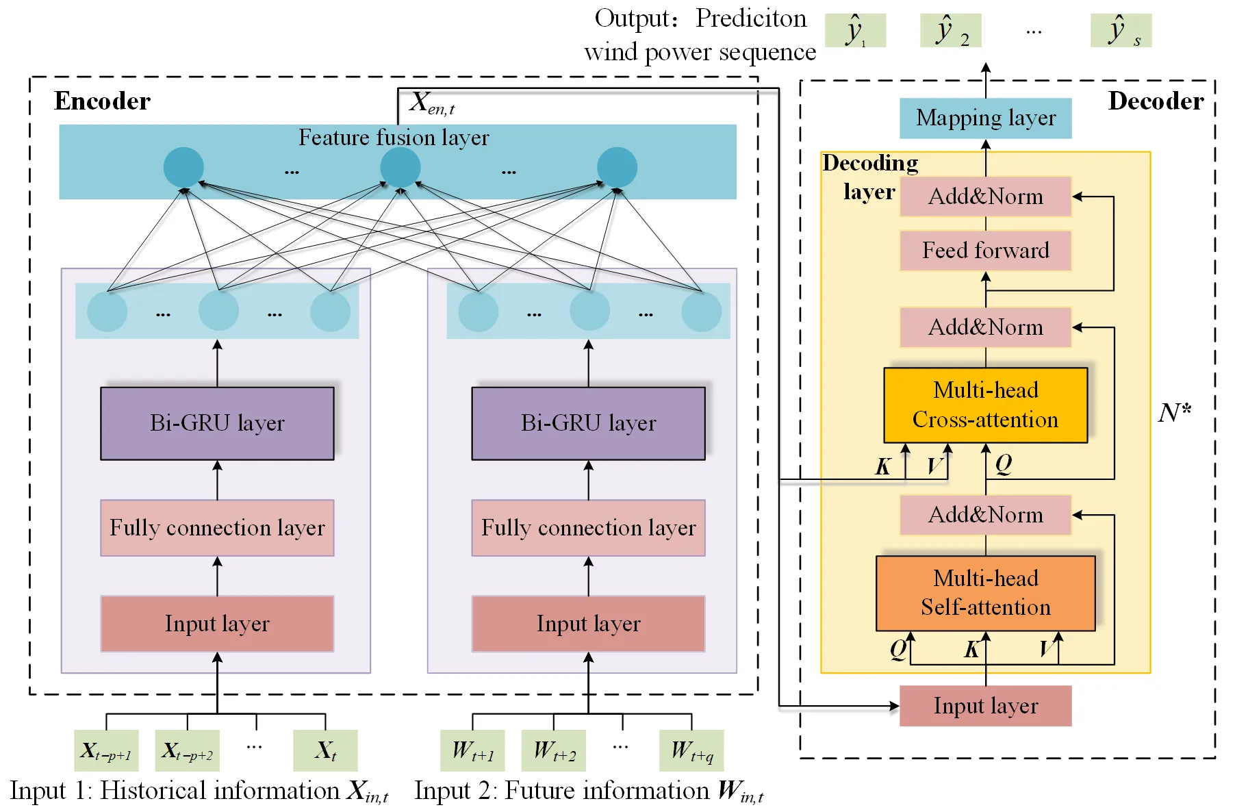Equation (2), the final forecast wind power sequence $$\hat{\bm{y}} = \left[ \hat{y}_{t + 1} , \hat{y}_{t + 2} , . . . , \hat{y}_{t + s} \right]$$ can be obtained.