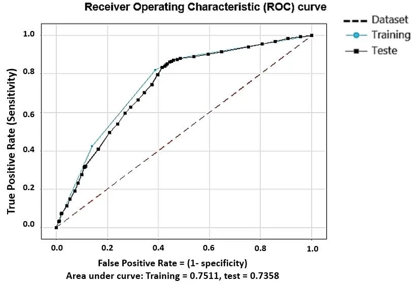 The classification performance of the decision tree was assessed using a confusion matrix, which evaluates the accuracy of class predictions based on the following metrics: True Positive Rate (TPR), also referred to as sensitivity or statistical power, defined as the probability of correctly predicting the occurrence of an event; False Positive Rate (FPR), or Type I error, representing the probability of incorrectly predicting an event when it did not occur; False Negative Rate (FNR), or Type II error, indicating the probability of failing to predict an event that did occur; and True Negative Rate (TNR), defined as the probability of correctly predicting the absence of an event. A Receiver Operating Characteristic (ROC) curve was constructed to validate model performance by plotting the TPR on the