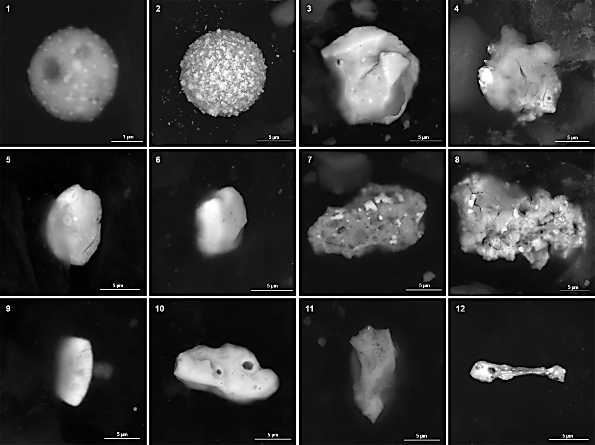 4] reported the detection of such particles in samples collected from vehicle occupants exposed to deployed airbags. These particles also contained additional elements—such as zirconium (Zr), copper (Cu), cobalt (Co), and calcium (Ca)—which, despite not typically being associated with characteristic GSR, raise concerns about potential false positives. Consequently, although elemental composition remains the primary criterion for GSR identification, morphometric analysis can provide valuable complementary information for distinguishing characteristic GSR from non-firearm-related particulate sources.