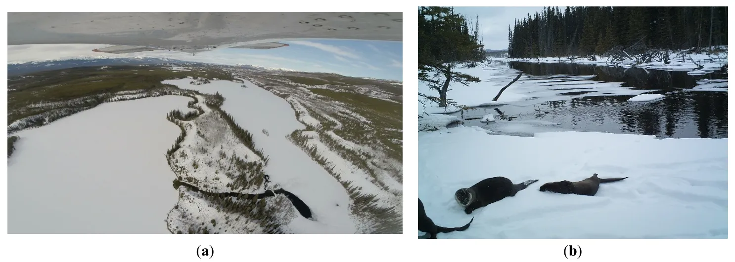 In boreal ecosystems, various mammals and birds rely on aquatic habitats for food. Some of these species remain active at northern latitudes through the winter months when most water bodies are ice-covered: they do not migrate or hibernate. Four semi-aquatic mammals—river otter (