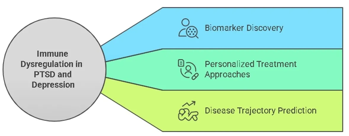 8]. These immune alterations have been associated with changes in brain structure and function, including reduced hippocampal volume and altered limbic connectivity, potentially contributing to the pathogenesis of PTSD and its frequent overlap with MDD.
