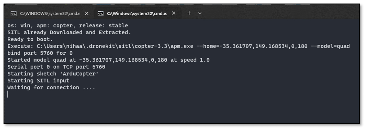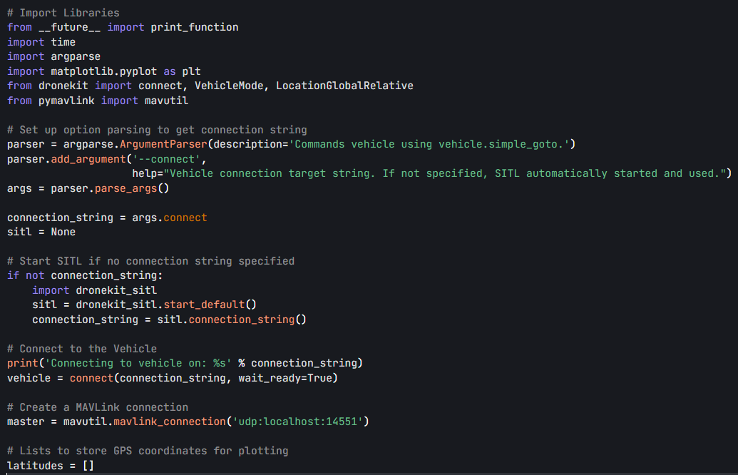 MAVProxy acts as the intermediary responsible for transmitting and receiving messages from the simulated drone, which, in the case of this project, is an SITL copter. The implementation of such a simulation scenario enables developers to emulate and test various aspects of the drone’s behavior in a controlled and safe virtual environment. A DroneKit-Python script plays an important role in this framework, serving as the conduit for sending commands to the drone. This script links with a