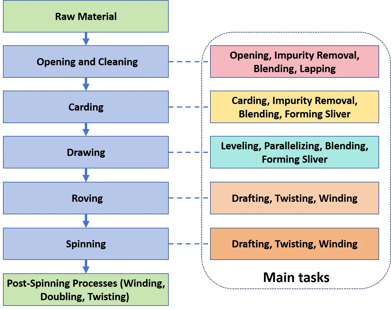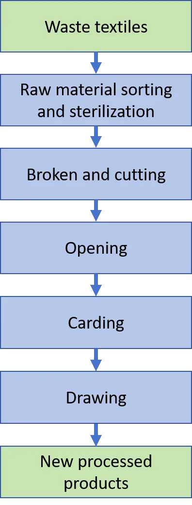 26] representing the highest proportion among the three major recycling technologies. The typical process consists of several key steps: sorting, cutting, fiber opening, carding, and re-spinning.