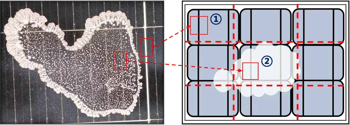 27]. Over time, the presence of salt patches not only reduces system output but also accelerates surface wear and thermal imbalance, posing potential risks to the long-term reliability and maintenance cost of marine PV installations.