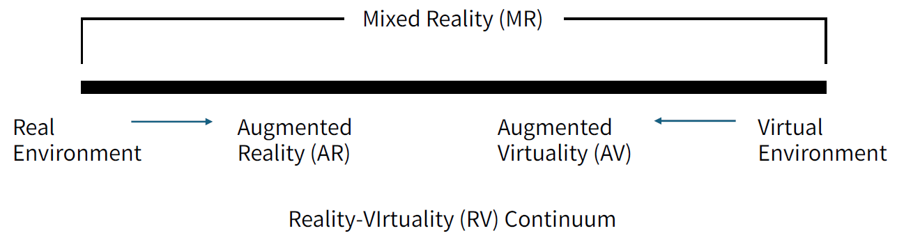 XR is an umbrella term encompassing VR, AR, and Mixed Reality (MR). It is situated along Milgram’s “virtuality continuum” [