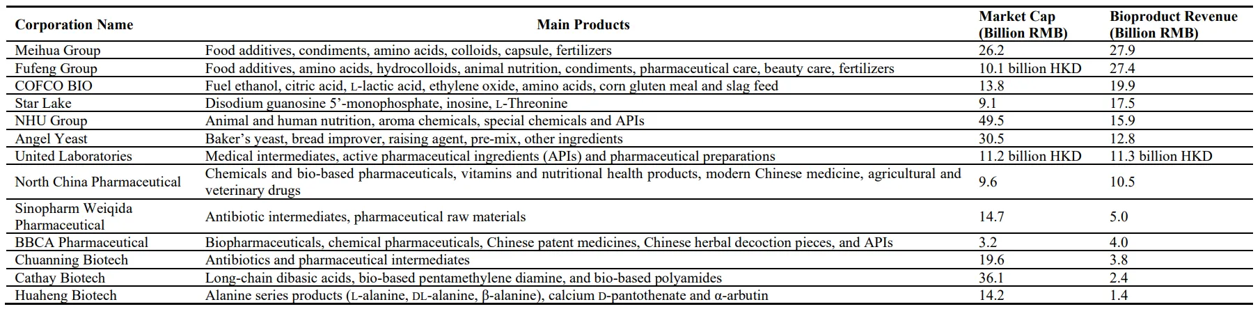 . China’s top fermentation enterprises (compiled based on publicly available data).