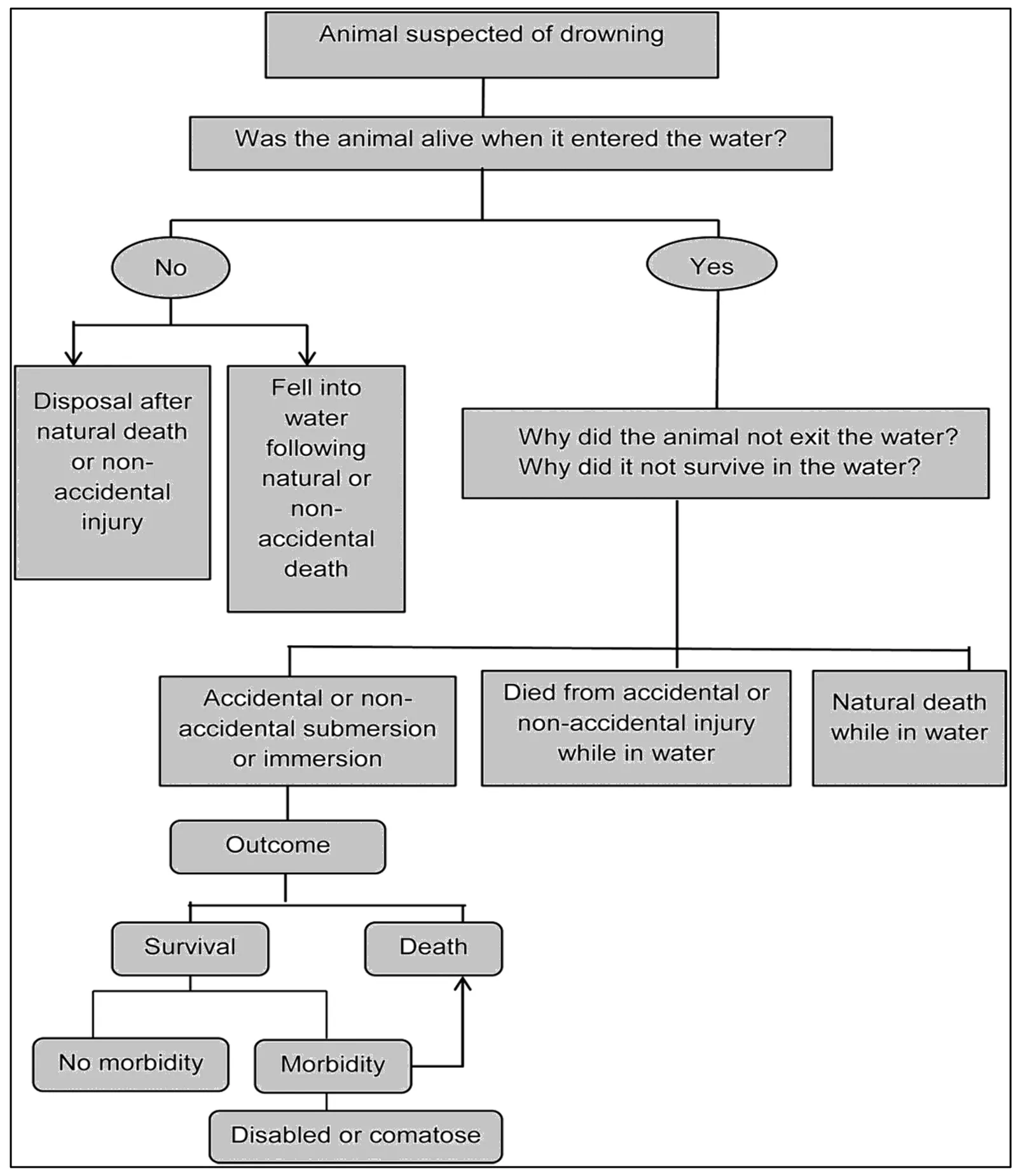 Among the array of causes of animal fatalities, drowning remains one of the most diagnostically challenging to confirm. Drowning is clinically defined as a form of asphyxia resulting from submersion (entire body below water) or immersion (airways only submerged) in a fluid medium, leading to primary respiratory failure [
