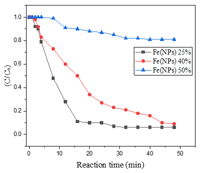 Additionally, catalytic reduction tests were performed to evaluate whether these structural differences led to changes in the catalytic activity of the Fe(NPs).