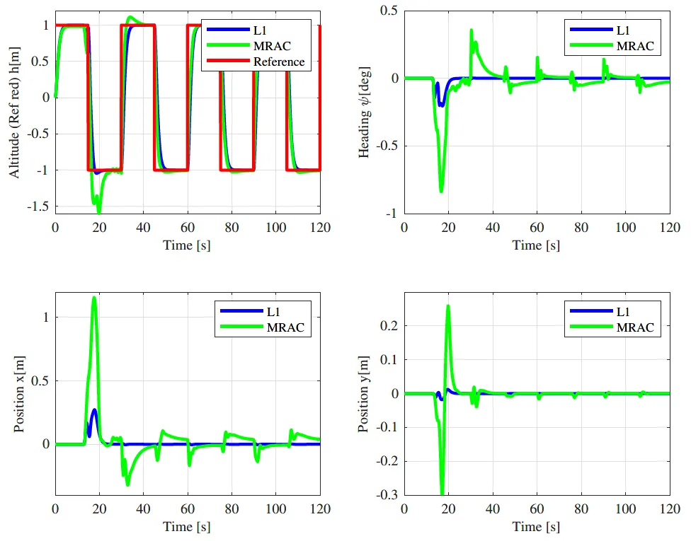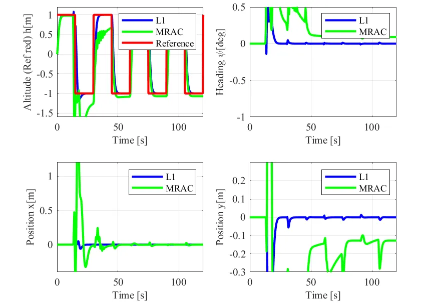 L1 Adaptive controller for trajectory tracking of an indoor quadrotor.
