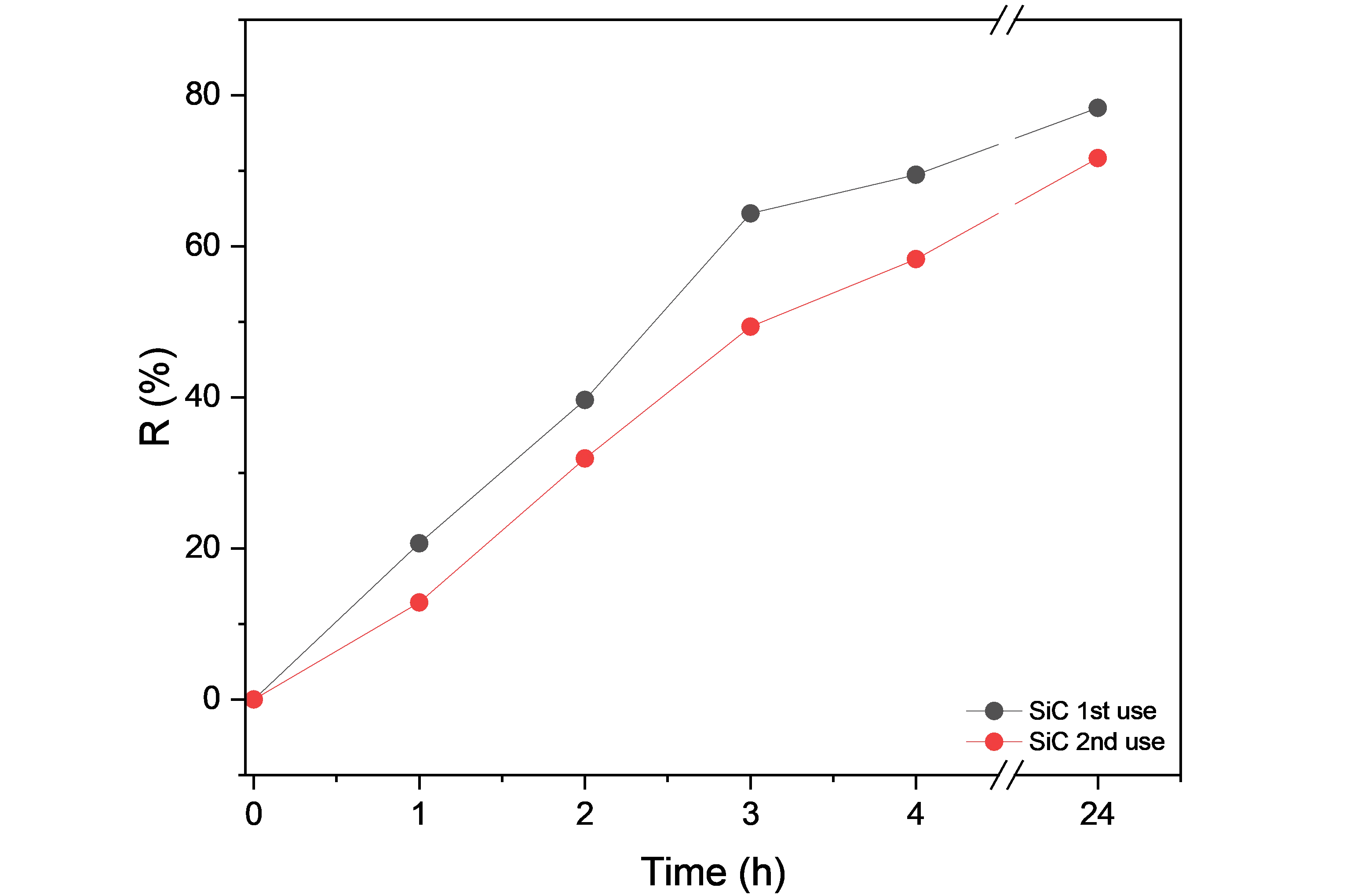 The use of SiC as a photocatalyst for the degradation of organic pollutants in water can be found in the literature: for example, the use of Ag-decorated β-SiC for the photo-degradation of Orange G and Amido Black 10B under UV light [