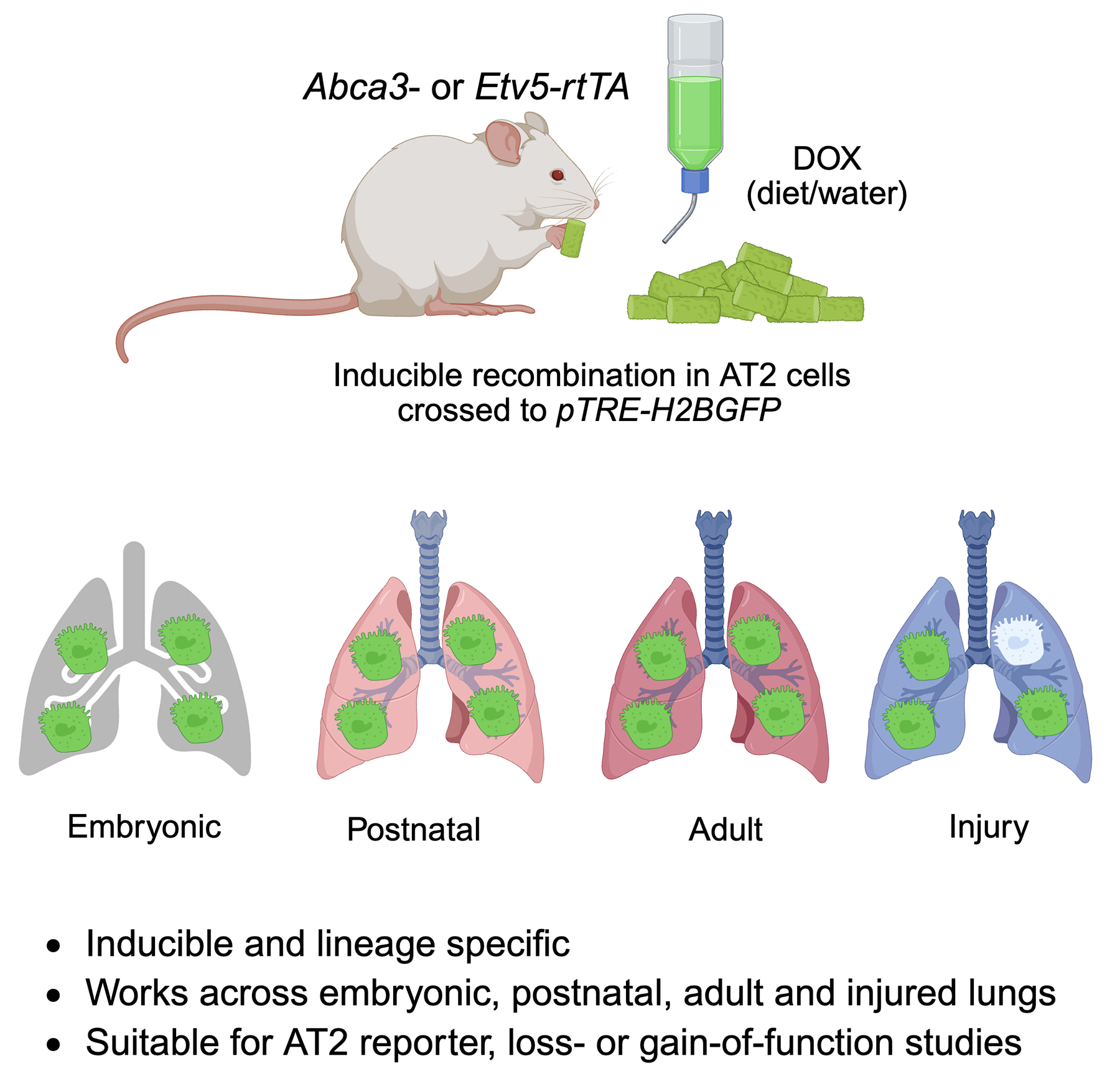 Strategies for Labeling AT2 Cells in Murine Lung via Abca3 and Etv5-Driven Reporters. Journal of Respiratory Biology and Translational Medicine 2026, 3, 10002. https://doi.org/10.70322/jrbtm.2026.10002