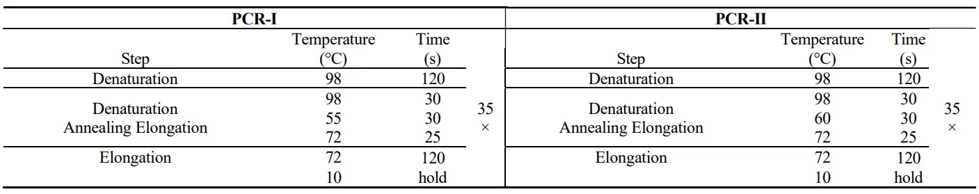 . The conditions for PCR-I and PCR-II used to produce AKIII and serC LET.