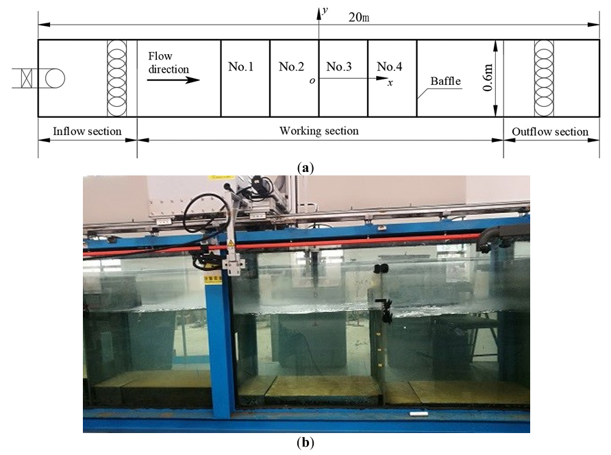 A fishway can assist fish species in overcoming barriers to migration, which depends on the eco-hydraulic characteristics of the fishway. Based on the tail fish benefiting when at the rear of a school than when at the front, and taking into account most anadromous fish species being characterized by egg-shaped morphology, the turbulent characteristics of an egg-shaped orifice fishway were experimentally studied in a fishway flume, a comparison with a rectangular orifice fishway with the same aspect ratio was made. The results showed that the maximum longitudinal velocity for the egg-shaped orifice decays faster than that for the rectangular one, the longitudinal velocity profile exhibits two peak values, while the corresponding velocity distribution for the rectangular orifice only reveals one peak, peak values of turbulence intensity on the different horizontal plane of egg-shaped orifice occur in the orifice edges, the larger turbulence intensities still exists in the central besides the edges for the rectangular orifice, Reynolds stress reaches peak value at the orifice edges, Auto-correlation coefficient of longitudinal velocity within orifice region is of small amplitude and short period relative to the outside the orifice region, microscale eddies within the orifice region were larger than those outside, mean scale of eddy is of larger variation and shorter period, and develops outside the orifice region, frequency-spectrum of velocity fluctuation exhibits dominant frequency in the low-frequency domain.