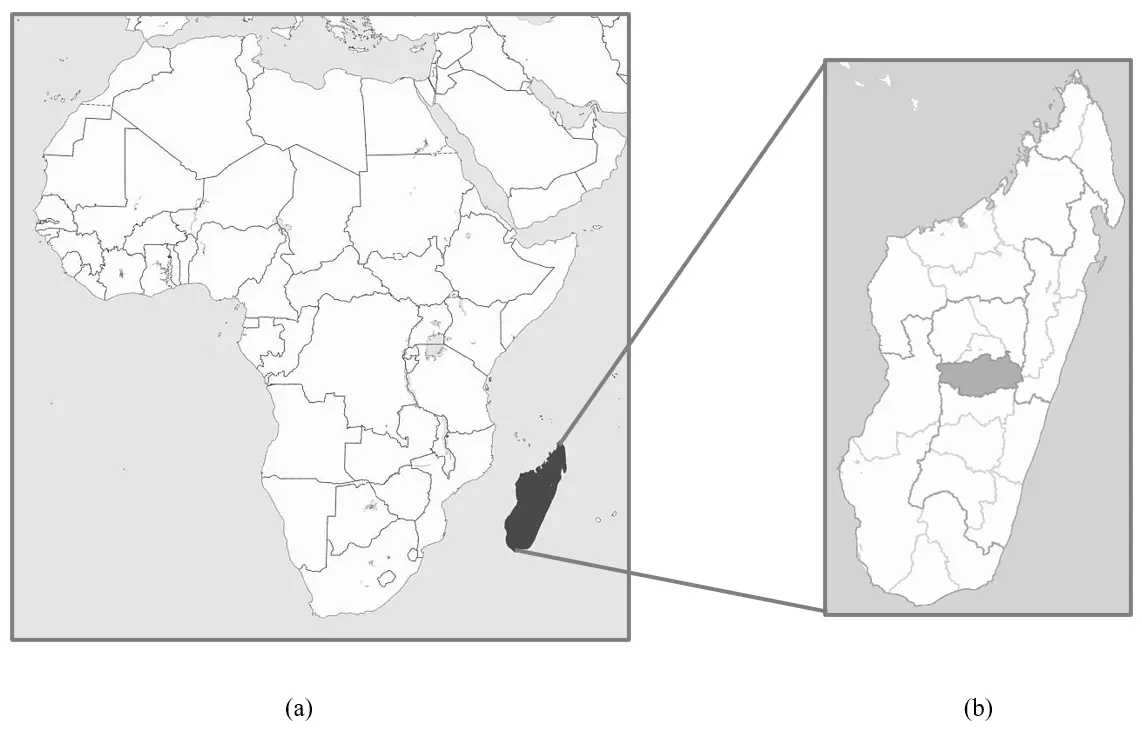 Milk production in developing African countries is a viable path for smallholders’ sustainable development. Supporting interventions should be shaped by evidence from comprehensive, context-specific analyses. Using survey data, this study contributes to the development-oriented literature on dairy productivity in African smallholder systems by conducting the first stochastic frontier analysis in the Malagasy context. Focusing on milk producers in central Madagascar’s crop-livestock family farms, a stochastic frontier production function with inefficiency effects is developed. The fitted frontier comprises the number of cows, annual purchased feed expenditure, farmer’s labor, and total household assets owned. Distance from the frontier is explained by the use of improved breeds, integration in the regional milk zone, farmer years of experience, the presence of off-farm income, and the number of oxen owned. Technical efficiency ranged from 4.6% to 90.8% around a mean of 55.5%. Results revealed how, in this context, cows are embedded in diversified family farming systems where resources are allocated across production activities and household needs. The study’s multidisciplinary stochastic frontier analysis provides a more complete picture to guide research and policy for smallholders’ sustainable rural development.