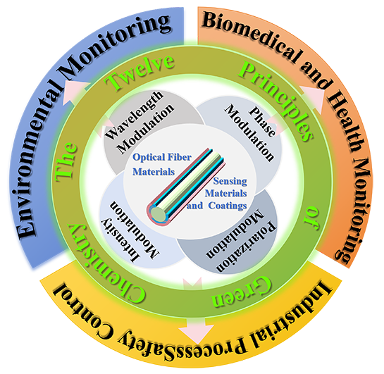 Optical fiber sensing technology offers high sensitivity, electromagnetic immunity, and distributed sensing capabilities, with broad applications in environmental, biomedical, and industrial monitoring. However, its reliance on heavy-metal-doped glasses, rare-earth elements, and non-biodegradable polymers imposes significant environmental burdens across their lifecycle. This review establishes a systematic framework based on the Twelve Principles of Green Chemistry to assess and redesign optical fiber sensing materials, including silica, soft glass, and polymer matrices, as well as functional coatings, fluorescent probes, and plasmonic nanostructures. It highlights green alternatives such as sol-gel synthesis, bio-based polymers, carbon quantum dots, and biosynthesized nanoparticles. A multi-dimensional sustainability assessment, covering performance, environmental impact, economics, and social factors, identifies key challenges such as performance-environment trade-offs and scaling-up costs. Future pathways integrating AI-assisted design, additive manufacturing, modular systems, and policy support are proposed. The study argues that green attributes and high performance are synergistic, positioning green optical fiber sensing as essential for achieving circular economy goals and UN Sustainable Development Goals.