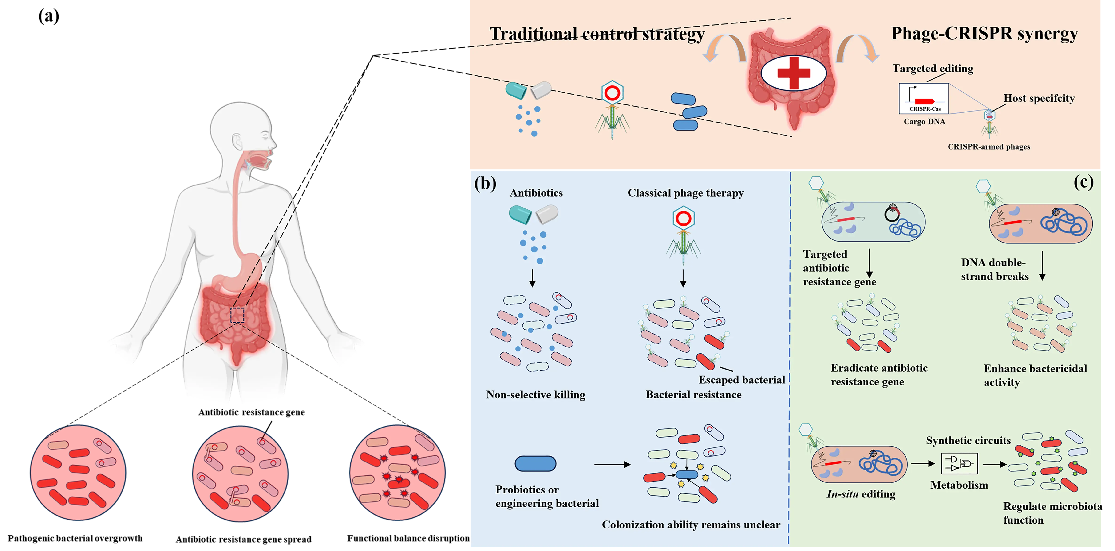 The dysregulation of microbial communities poses severe threats to host health and ecological stability, yet traditional microbiome modulation strategies lack specificity and often exacerbate dysbiosis. The CRISPR-Cas system offers unprecedented potential for targeted microbiome regulation due to its sequence-specific nucleic acid recognition and cleavage capabilities, but its translation is hindered by inefficient and non-specific delivery. As natural bacterial predators with inherent host specificity, bacteriophages have emerged as ideal carriers to address this delivery bottleneck. The development of CRISPR-armed phages combines the targeted delivery of phages and the precision editing advantages of CRISPR-Cas systems. This review systematically elaborates on the design and mechanism of CRISPR-armed phages for microbiome engineering. CRISPR-Cas systems were classified on the basis of their structural and functional characteristics, as well as their regulatory effects, in detail after phage delivery. The engineering strategies of integrative and non-integrative phage vectors were then discussed, followed by their applications in ecological regulation and genetic regulation of the microbiome. The current limitations were finally analyzed, such as narrow phage host range, bacterial phage resistance, and low editing efficiency. This review provides a comprehensive theoretical framework to promote the development of CRISPR-armed phages, aiming to advance precision microbiome engineering for human health.