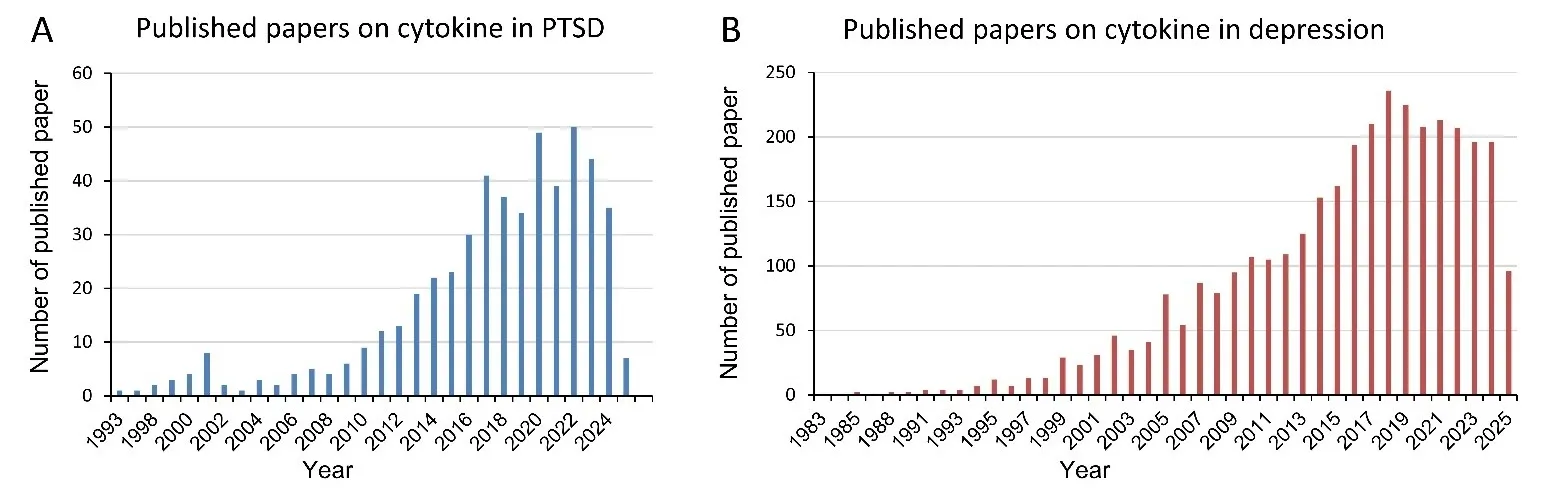 Post-traumatic stress disorder (PTSD) and major depressive disorder (MDD) are debilitating psychiatric conditions that are frequently comorbid and linked to chronic immune dysregulation. Increasing evidence implicates cytokine-mediated inflammation in the pathophysiology of these disorders. Cytokines, key signaling molecules of the immune system, influence central nervous system (CNS) function by crossing the blood-brain barrier or signaling via neural routes, thereby affecting neuronal circuits involved in mood regulation and cognition. Elevated levels of pro-inflammatory cytokines—such as interleukin-1β (IL-1β), interleukin-6 (IL-6), tumor necrosis factor-alpha (TNF-α), and interferon-gamma (IFN-γ)—have been observed in both peripheral and central compartments of individuals with PTSD and MDD. These molecules contribute to microglial activation, synaptic remodeling, hippocampal atrophy, and altered neurotransmission. Furthermore, chemokines such as CXCL12 and CCL2 are implicated in stress-induced neuroplasticity impairments. Moderating factors, including genetic polymorphisms (e.g, FKBP5, CRP), early-life adversity, sex differences, and exposure type, influence individual vulnerability to immune-related neuropsychiatric outcomes. This review synthesizes current molecular and clinical evidence, highlighting how cytokine dysregulation bridges peripheral inflammation and CNS pathology. It also explores emerging therapeutic strategies targeting inflammatory pathways and discusses the promise of biomarker-based approaches and machine learning for patient stratification and personalized treatment.