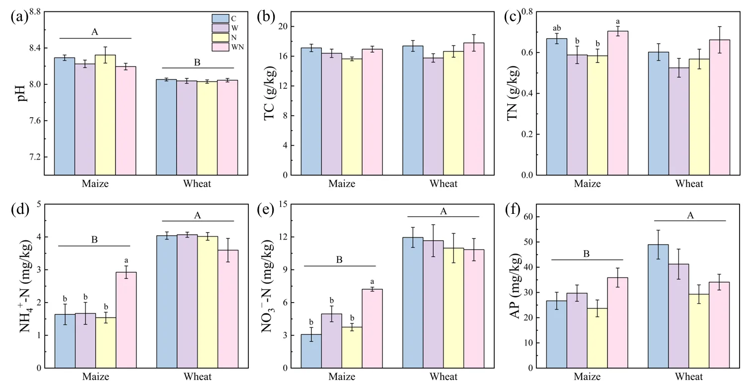 As an emerging pollutant, microplastics (MPs) pose a potential risk to ecosystem health due to recycling technology’s limitations and long-term durability. Wood chip amendments can enhance the holding capacity of water and nutrients and improve the soil structure and quality of terrestrial ecosystems. However, the effects of wood chip amendments on MPs-contaminated soil-plant systems are still unclear. In this experiment, we employed a combination of field experiments, soil and plant measurements, molecular techniques (DNA extraction and sequencing), and advanced statistical analyses. A comprehensive assessment was conducted on the effects of Low-density polyethylene (LDPE) MPs on soil properties, wheat growth, and soil microbial communities, and the potential of wood chips as a mitigating agent was also evaluated. The results indicated that wood chips improved soil nutrient content, enhanced the activity of enzymes related to carbon, nitrogen, and phosphorus cycling, and promoted crop growth, all of which were negatively affected by LDPE. The effect of MPs on fungi was greater than that on bacterial communities, and adding wood chips could improve the α-diversity of fungal communities rather than bacteria. LDPE may increase the abundance of pathotrophic fungal groups, such as Stachybotrys and Alternaria. However, certain pathotrophic groups have been found to potentially facilitate the degradation of LDPE-MPs. LDPE reduced the symbiotroph groups and increased the competitiveness and complexity of the community in the microbial co-occurrence network. LDPE treatment inhibited the N-cycling bacteria group, while adding wood chips could promote most of the N-cycling bacteria groups. Wood chips increased saprotroph groups such as Trichoderma, which are able to degrade plastics. Wood chips emerge as a cost-effective and environmentally friendly solution to improve soil quality and mitigate the negative impacts of microplastics on crop growth.