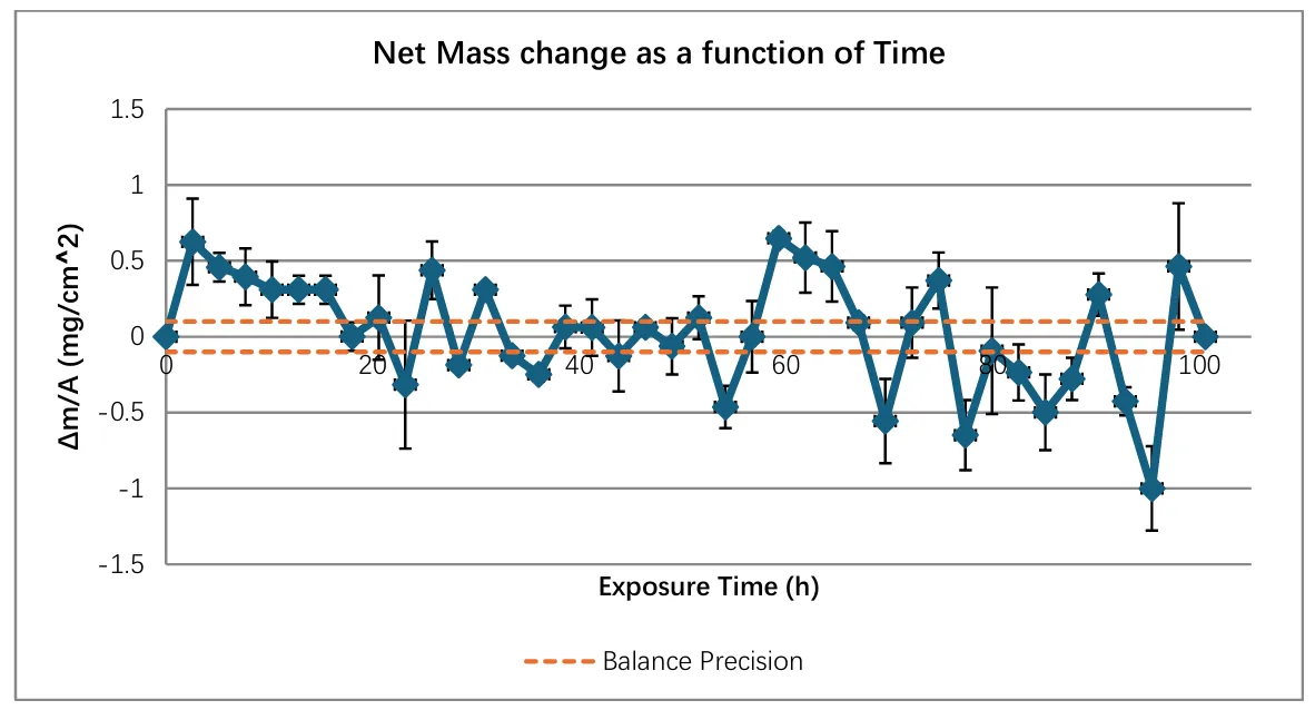 The degradation of industrial components due to high-temperature oxidation poses a significant challenge. This study highlights the excellent oxidation resistance of the MA 754 superalloy under cyclic high-temperature conditions at 1100 °C. The weight change during thermal cycles was measured to assess the kinetics of oxidation. Optical microscopy, scanning electron microscopy, X-ray diffraction, and energy dispersive spectroscopy were used to characterize the oxide scales’ microstructure, morphology, phases, and composition. The results revealed that the MA 754 superalloy demonstrated excellent resistance to oxidation, with a mean net mass change of 0.032 mg/cm2 over the oxidation time. The oxidation products identified were NiO and NiCr2O4. A small peak suggests the possible formation of Al2O3. The oxide scales’ morphology changed from pyramidal to granular type during the oxidation test. The oxidation steps of the MA 754 superalloy were determined by comparing the microstructures of the alloy surface next to the oxide layer.