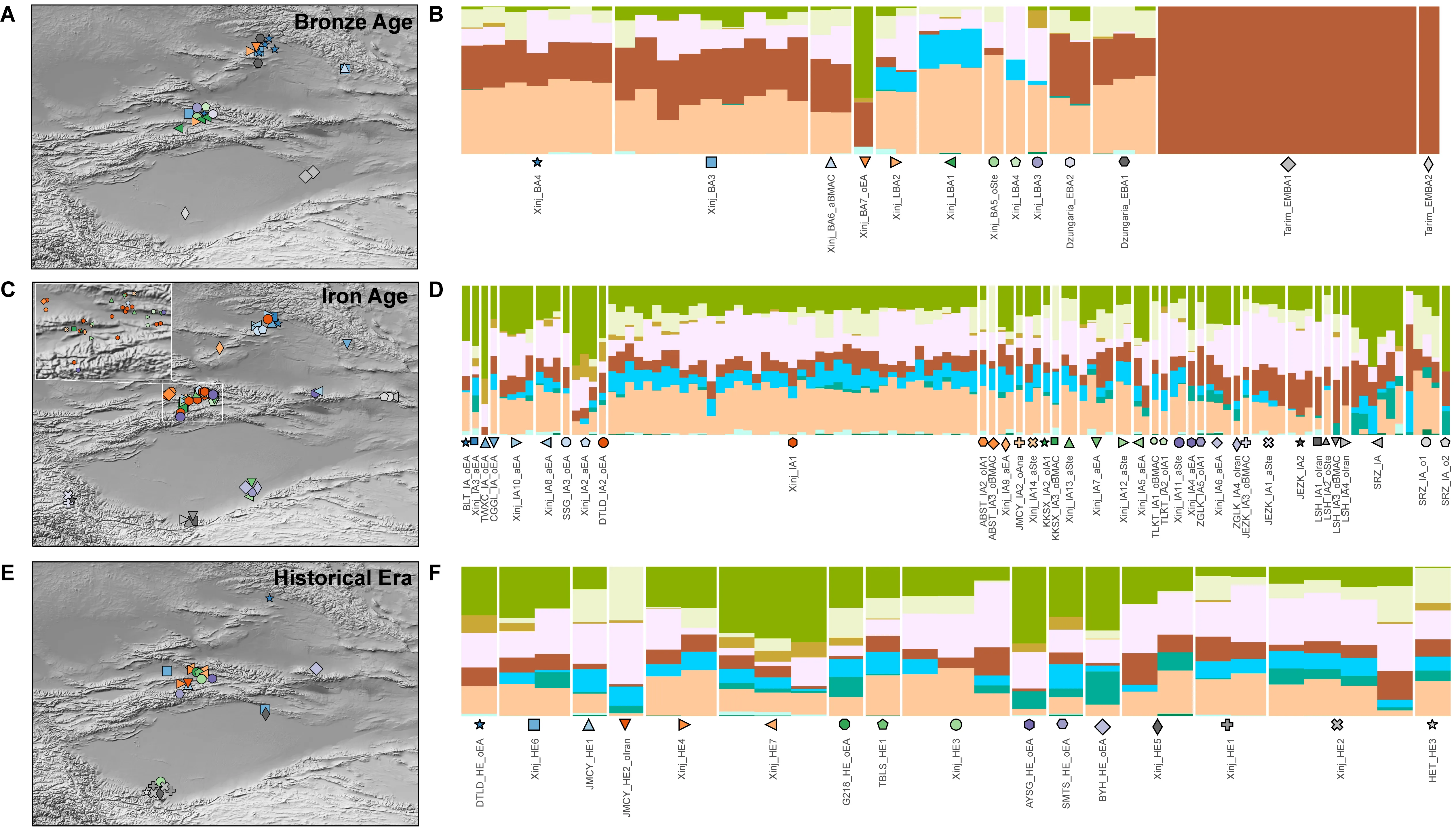 Xinjiang, a “genetic crossroads” of Eurasia, offers critical insights into transcontinental population migrations, cultural exchanges, and genetic fusion. This review synthesizes ancient genomic data from about 200 individuals (from the Bronze Age to the Historical Era), alongside archaeological, paleo microbial, and environmental evidence. Key findings include: (1) Bronze Age genetic heterogeneity: Tarim Basin populations (e.g., Xiaohe culture) retained high Ancient North Eurasian (ANE) ancestry, while northern Xinjiang groups exhibited tripartite admixture among ANE, Afanasievo pastoralists, and Baikal hunter-gatherers; (2) Stratified admixture patterns emerged during the Iron Age to Historical Era, shaped by Xinjiang’s “barrier-and-connection” geography traits; (3) Trans-Eurasian interactions were propelled by technological diffusion (e.g., metallurgy), socio-political transformations (e.g., Silk Road governance), and adaptive strategies (e.g., lactose fermentation), positioning Xinjiang as a nexus of Eurasian mutil-connectivity. Our synthesis bridges genetics, archaeology, and environmental clues, highlighting Xinjiang’s critical role in Eurasian population dynamics. Future research should employ high-resolution spatiotemporal sampling and interdisciplinary approaches to unravel genetic-societal coupling during vital historical phases (e.g., Xiongnu expansion) and molecular mechanisms of environmental adaptation.