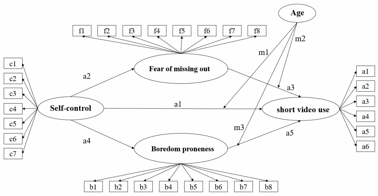 Short videos attract users across various age groups; however, studies focusing on single populations, such as adolescents, have limited the understanding of possible age-related changes and differences in short video use. The aim of this study was to examine age trends in short video use and to identify age differences in the psychological mechanisms underlying use behaviors. A total of 1006 adults aged 18–83 years participated in the study and completed a battery of assessments, including short video use, self-control, social motivation, and covariates. The results showed that age moderated the effects of boredom proneness and fear of missing out on short video use. Self-control was associated with people’s use behavior, and boredom proneness and fear of missing out mediated this association across age. Specifically, older adults’ use was more likely to be associated with alleviating boredom rather than fear of missing out, whereas both were associated with young adults’ use. Investigating these mechanisms may provide a better understanding of the factors that correlate with short video use and help target interventions to different age groups.