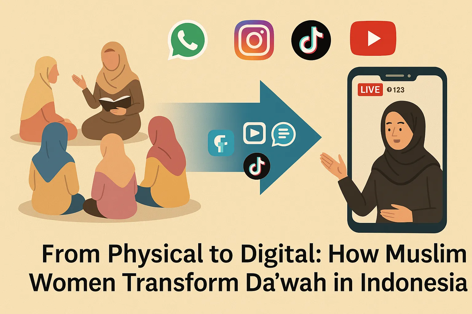 This study investigates the changing role of women in digital da’wah and the digital transformation of Majelis Taklim (Islamic study groups) in Indonesia. As digital platforms like YouTube, Instagram, WhatsApp, Telegram, and TikTok become more widely used, this study explores how women negotiate power, shape religious discourse, and interact with audiences online. The study employs a qualitative approach using digital ethnography and critical discourse analysis (CDA) to examine the interactions and narratives shaping women’s roles in digital da’wah. Data were collected through digital observations, in-depth interviews with female preachers (ustazah), moderators, and active participants, and content analysis of Majelis Taklim sessions on social media. The study applies Fairclough’s CDA to analyze power relations within religious discourse and Van Dijk’s Critical Discourse Studies (CDS) to examine how digital da’wah reconstructs female religious authority. The results reveal a shift in women’s roles from passive participants to active producers of religious discourse. While digitalization provides broader access and participation opportunities, female preachers still face challenges in establishing religious authority, particularly in male-dominated Islamic discourses. The study finds that key themes in women-led da’wah include Islamic parenting, hijrah (religious transformation), Islamic economy, and women’s roles in Islam. Digital platforms do provide female scholars more prominence, but they also perpetuate patriarchal interpretations of religious norms. By combining digital ethnography, critical discourse analysis, and religious studies, this work adds to the conversation on Islam, gender, and digital religious practices. It shows how digital media influences women’s involvement in da’wah by presenting opportunities and limitations. Unlike other studies concentrating on male religious authority in digital da’wah, this research offers a thorough, empirical, and theoretical examination of how women manage religious influence and legitimacy online. The findings have implications for developing inclusive, digital-based Islamic education and policymaking on religious discourse in the digital era.