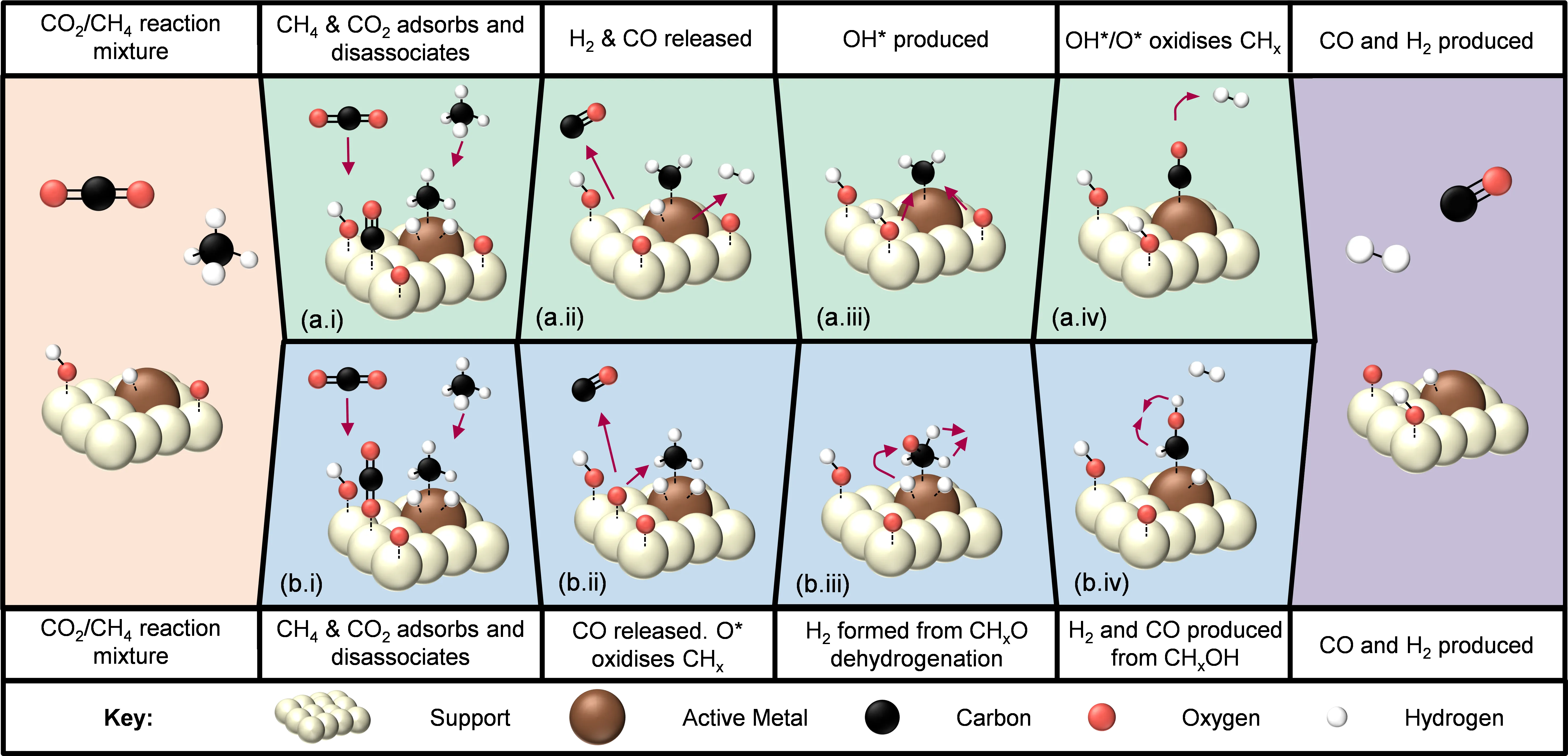 Dry reforming of methane (DRM) is a promising strategy to closing the carbon loop. DRM valorises CO2 and CH4 by producing synthesis gas (H2 and CO), the precursor to various synthetic fuels. Key limitations of the DRM are the high-temperature requirements (600–1000 °C) and competing side reactions, many of which produce carbon that can deactivate the catalyst. Designing a stable, low-cost and active catalyst remains one of the greatest DRM challenges. One potential strategy to curtail the limitations that hinder DRM is to utilise visible light to access the localised surface plasmon resonance (LSPR) of metal catalysts. The current review discusses the recent developments in designing catalysts for LSPR-assisted thermocatalytic DRM. The thermodynamic and kinetic principles that underpin DRM are first introduced, followed by an overview of thermocatalyst design strategies. The mechanism behind LSPR is discussed, with recent developments and strategies for introducing LSPR to the DRM examined. The review offers a thorough overview of catalyst design for light-assisted DRM and may be used as a guide to developing stable and light-receptive catalysts for the reaction.