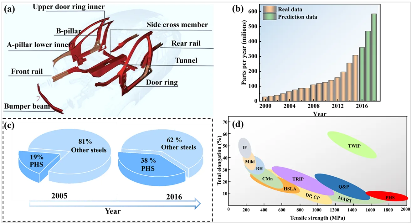 As an important lightweight material, press-hardened steels (PHS) are now widely used in the car body-in-white. However, severe oxidation of conventional Mn–B bare sheets not only damages production molds, but also prevents subsequent welding and painting, leading to a significant increase in production costs. The aim of this review is to systematically summarize the current solutions to overcome the problem of high-temperature oxidation of conventional Mn–B PHS and to highlight future directions for improvement. The review begins with a brief background on PHS, followed by a detailed description of measures to improve the oxidation resistance of conventional Mn–B PHS and the development of novel PHS with superior oxidation resistance. The oxidation resistance solutions for conventional Mn–B PHS mainly include the use of coatings and pre-deposited films. In contrast, the oxidation resistant PHS mainly includes the use of the oxidation resistant elements Cr, Si, Al or rare earth elements to improve the steel’s own high-temperature oxidation resistance.