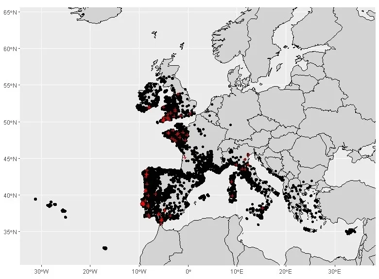 Epiphytic species grow (almost) exclusively on a living substrate, typically a tree, but epiphytic growth is not restricted to them. Individuals of normally lithophytic or terrestrial species may occasionally be found on a tree as so-called accidental epiphytes. Species of the focal group of this study, Crassulaceae, are typically found on rocks and in rock fissures. While there is a small proportion of true epiphytes globally, the propensity of the other family members to occur as accidental epiphytes is largely unexplored. Here, I investigated this question for 29 European members of the family with the use of the participatory science data platform iNaturalist. Umbilicus rupestris stands out in regard to epiphytic occurrences, although the incidence of epiphytic growth is still rather low with c. 1% of c. 14,000 observations. For all other species, epiphytic growth has not been reported or was exceptional. As expected, epiphytic individuals of U. rupestris were limited to regions without frost, while a predicted limitation to the wettest parts of the species’ geographic range was not supported by the data. Arguably, Umbilicus rupestris could be a promising model to study the early steps of epiphyte evolution by comparing epiphytic and terrestrial individuals in regard to differential germination success, ease of establishment, differences in morphological and physiological traits and general population dynamics. The results of such studies should be highly instructive for our understanding of the challenges that terrestrial species face when conquering tree crowns.