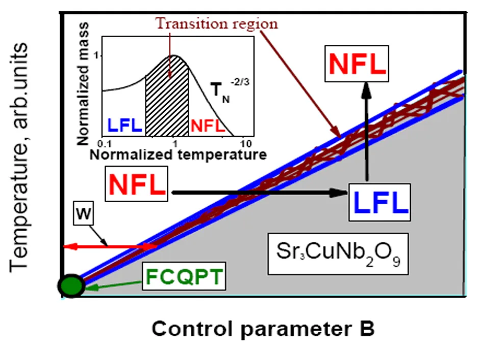 Quantum spin liquids of frustrated magnets are among the most attractive and basic systems in physics. Frustrated magnets exhibit exceptional properties as insulators and metals, making them advanced materials that represent materials for future technologies. Therefore, a reliable theory describing these materials is of great importance. The fermion condensation theory provides an analytical description of various frustrated quantum spin liquids capable of describing the thermodynamic and transport properties of magnets based on the idea of spinons, represented by chargeless fermions filling the Fermi sphere up to the Fermi momentum pF . We show that the low temperature thermodynamic of Sr3CuNb2O9 in magnetic fields is defined by strongly correlated quantum spin liquid. Our calculations of its thermodynamic properties agree well with recent experimental facts and allow us to reveal their scaling behavior, which is very similar to that observed both in heavy-fermion metals and in frustrated magnets or insulators. We demonstrate for the first time that Sr3CuNb2O9 belongs to the family of strongly correlated Fermi systems that form a new state of matter.