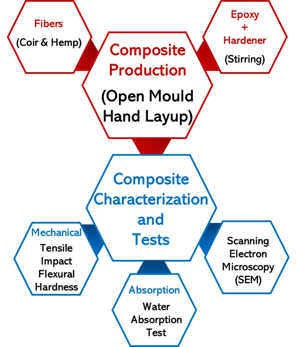 The growing demand for sustainable materials in the automotive industry has prompted research into natural fiber-reinforced composites. To reduce carbon footprints and enhance product sustainability, the sectors increasingly focus on renewable and biodegradable materials. Composites made from natural fibers, such as coir and hemp, offer a promising solution for creating lightweight, high-performance components with a reduced environmental impact.In this study, an experimental investigation was conducted to examine the impact of single and hybrid and treated and untreated fibers, on the properties of epoxy-based composites. Untreated hemp fiber with treated Coir fiber was used for the research. The composites were fabricated through the open mould hand lay-up technique. Samples were prepared by randomly dispersing the fibers in the epoxy matrix before pouring them into the respective moulds prepared according to ASTM standards. Tensile, impact, and hardness tests were conducted on the cured samples to determine their mechanical properties, while a scanning electron microscope was used to evaluate the fractured surface. Water absorption tendencies were also determined. The results showed that the sample denoted as 5CF wt.% had the best property combination with tensile strength (32.4 MPa), tensile modulus (11.9 GPa), flexural strength (167.0 MPa), and impact strength (46.8 kJ/mm2). It was discovered that hemp fiber-based composites were not enhanced properly due to lack of fiber surface modifications. Though optimum results were obtained from treated coir fiber-based single/distinct composite, untreated hemp fiber was discovered to aid some flexural modulus and hardness properties in the hybrid composite based on the best results obtained in its distinct-based composite. Therefore, untreated hemp fiber can be used in hybrid form with treated coir fiber where one of the fibers is scarce or when fiber surface medication is difficult to achieve. Thus, the results showed that 5CH-based composites are the most suitable composition for automotive components development where high-mechanical properties are essential.