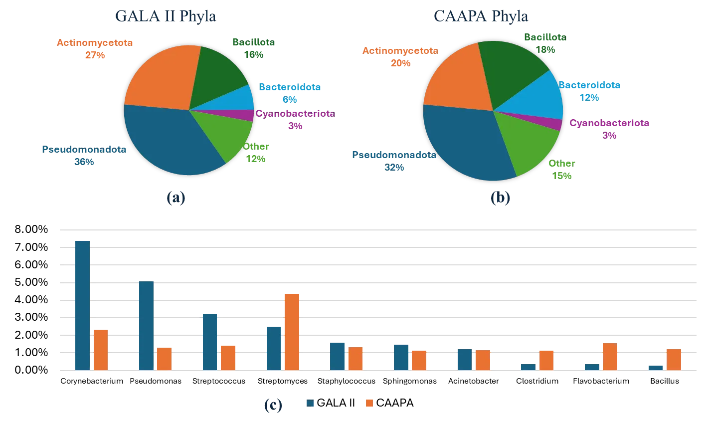 Asthma affects millions worldwide and involves complex genetic, immunological, and environmental factors. The nasal microbiome is increasingly recognized for its role in asthma development, but inconsistent results and small sample sizes have limited a clear understanding. We aimed to clarify the nasal microbiome’s role in asthma using large datasets and meta-transcriptomic analysis. RNA-seq data was analyzed from two large public studies: GALA II (694 children of Puerto Rican heritage; 441 asthmatics, 253 controls) and CAAPA (562 individuals of African ancestry; 265 asthmatics, 297 controls). After quality control and host read removal, microbial reads were annotated using Kraken2. α and β diversity analyses compared microbial diversity between asthmatic and control groups. Differential abundance analysis was conducted separately, controlling for age and sex, with results combined via meta-analysis. We found that asthmatic patients exhibited significantly higher α diversity indices (Shannon, Berger-Parker, Inverse Simpson, Fisher’s) in nasal microbiota compared to controls in GALA II, with similar trends in CAAPA. β diversity analysis showed significant differences in microbial composition in GALA II data. Differential abundance analysis identified 20 species in GALA II and 9 species in CAAPA significantly associated with asthma. Meta-analysis revealed 11 species significantly associated with asthma, including Mycobacterium_tuberculosis. Our study demonstrates increased nasal microbiome α diversity in asthmatic patients and identifies specific microbial species associated with asthma risk. These findings enhance understanding of asthma pathogenesis from the nasal microbiome perspective and may inform future research and therapeutic strategies.