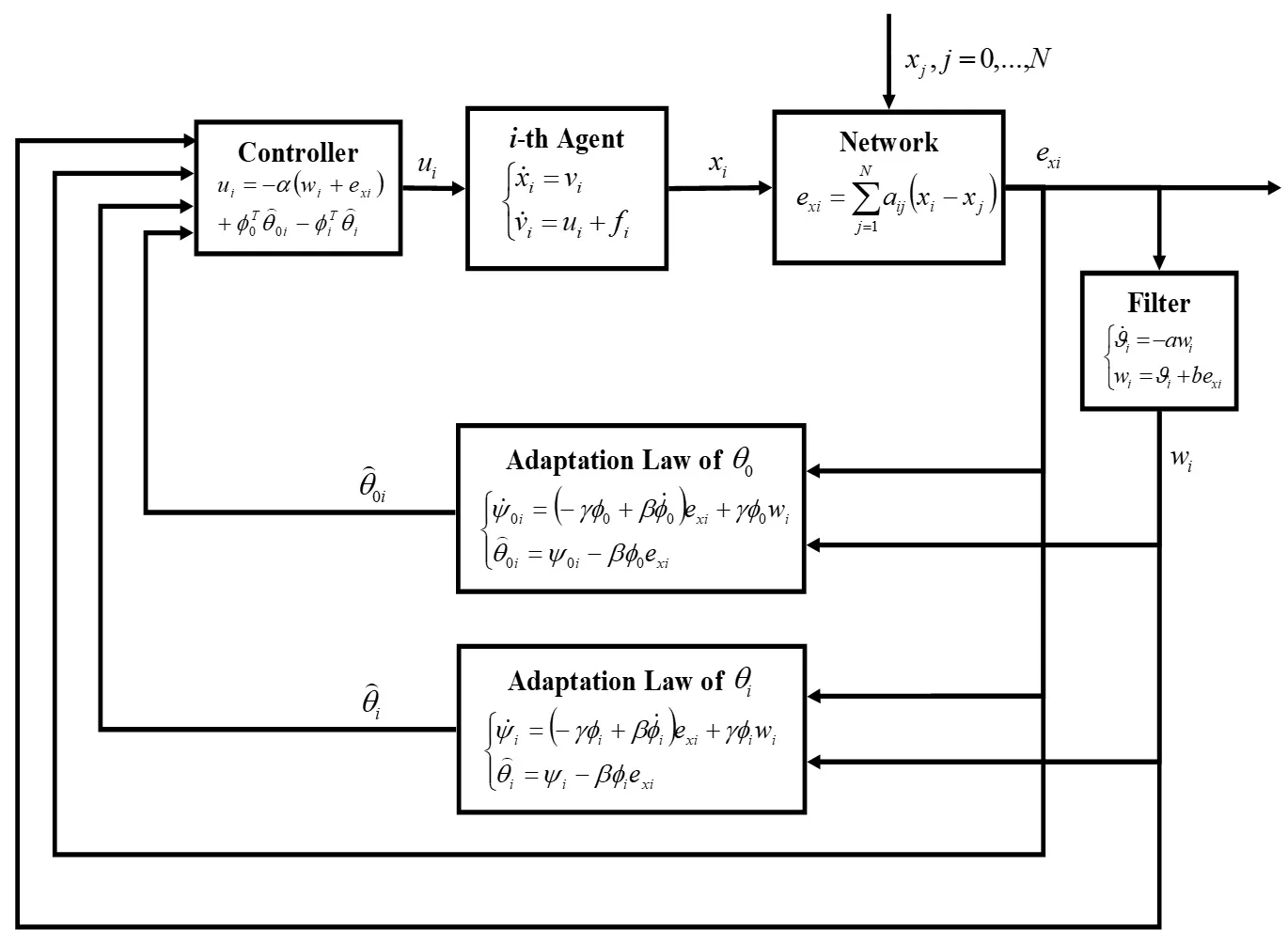 In this paper, the distributed leader-follower consensus of a group of agents with second-order dynamics under the undirected graph communication topology is studied. The main objective of this study is to solve a major practical multi-agent problem in which the acceleration of the leader is not communicated to each follower. In contrast, the follower agents include some unknown dynamics in their intrinsic structure. By assuming a linear regression structure for leader acceleration and agent’s unknown dynamics, Lyapunov-based adaptive control algorithms are devised to control the network of agents in the presence of the communication loss and modeling uncertainties. The presented study describes two multi-agent control strategies called fully-distributed adaptive control (FDAC) and partially-distributed adaptive control (PDAC) systems in the first method, the followers do not have any a priori information about the communication graph, while in the second method, some information about the eigenvalues of the communication graph is available. The mathematical manipulations required to prove the stability of the FDAC and PDAC methods are presented. Finally, illustrative simulations are conducted to render the proposed algorithms’ merits and efficiencies.