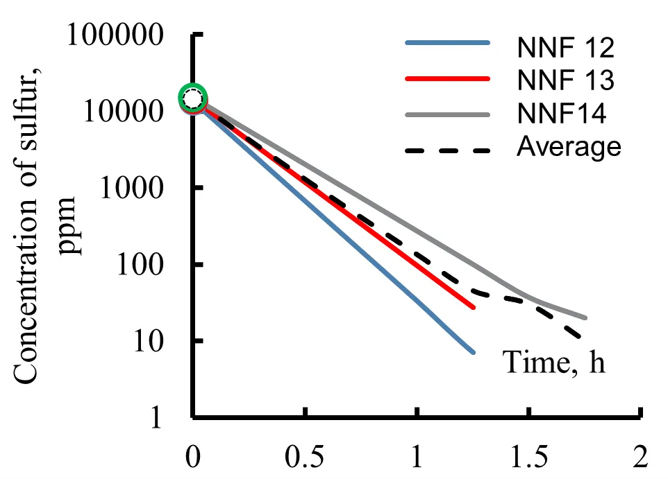 Hydrotreating of diesel fuel aims to reduce the sulfur content in the fuel to 10 ppm to meet environmental standards. However, this deep purification of diesel requires the use of expensive catalysts at hydrotreating plants with giant reactors with a capacity of 200–600 cubic meters. Such large volumes of reactors are associated with classical kinetic methods for chemical reactions, where the feedstock is in the reactor until the required conversion depth is reached. All known mathematical models for diesel hydrotreatment have a common drawback: they rely on approximations about the composition of multicomponent raw materials containing dozens of different organic sulfur compounds that react differently in hydrogenation reactions. This raw material is often presented in a mathematical model as a combination of two to six pseudo-components or lumps combining organosulfur impurities from one or more homologous groups. This theoretical basis allows us to simulate the current state of hydrotreating technology, but does not develop and promote it. We propose a new approach to mathematical modelling of diesel fuel hydrotreating, in which the structure of the mathematical model considers the composition of raw material as a set of 10–20 narrow fractions. The set of hydrogenated organosulfuric impurities within each fraction is treated as a single pseudocomponent. This allows us to integrate the system of differential equations of the model and adapt the rate constant to the concentration of hydrogenated organosulfur impurities at any given time during the process. The developed model has also allowed us to propose a new technology, hydrotreatment: separating the feedstock into two or three wide fractions, combining the corresponding narrow fractions, and then subjecting them to individual hydrogenation processes. As a new approach, this differential hydrotreatment technique will reduce the catalyst load in the hydrotreatment unit by approximately 50%, while maintaining efficiency of processing, or double efficiency while maintaining a similar catalyst load using traditional technology.