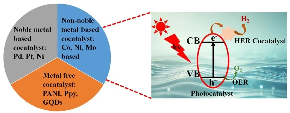 The reliance on fossil fuels has led to a substantial increase in greenhouse gas emissions, presenting a critical environmental challenge. Addressing this issue necessitates the adoption of alternative renewable energy sources, with green hydrogen emerging as a promising candidate due to its high gravimetric energy density and absence of harmful emissions. Among the various hydrogen production techniques, photocatalytic technology has garnered significant attention for its dual potential to produce green hydrogen and degrade pollutants, thereby addressing both energy and climate crises. Efforts to scale photocatalytic technology for industrial applications have identified cocatalyst integration as a pivotal strategy, as it enhances reaction kinetics by lowering the activation energy and mitigating charge carrier recombination. This review comprehensively examines the hydrogen economy, the underlying principles of photocatalysis, recent technological advancements, key factors influencing photocatalytic reactions, the role of catalysts in hydrogen evolution reaction (HER) surface mechanisms, strategies for cocatalyst optimization, and future directions for the field.
