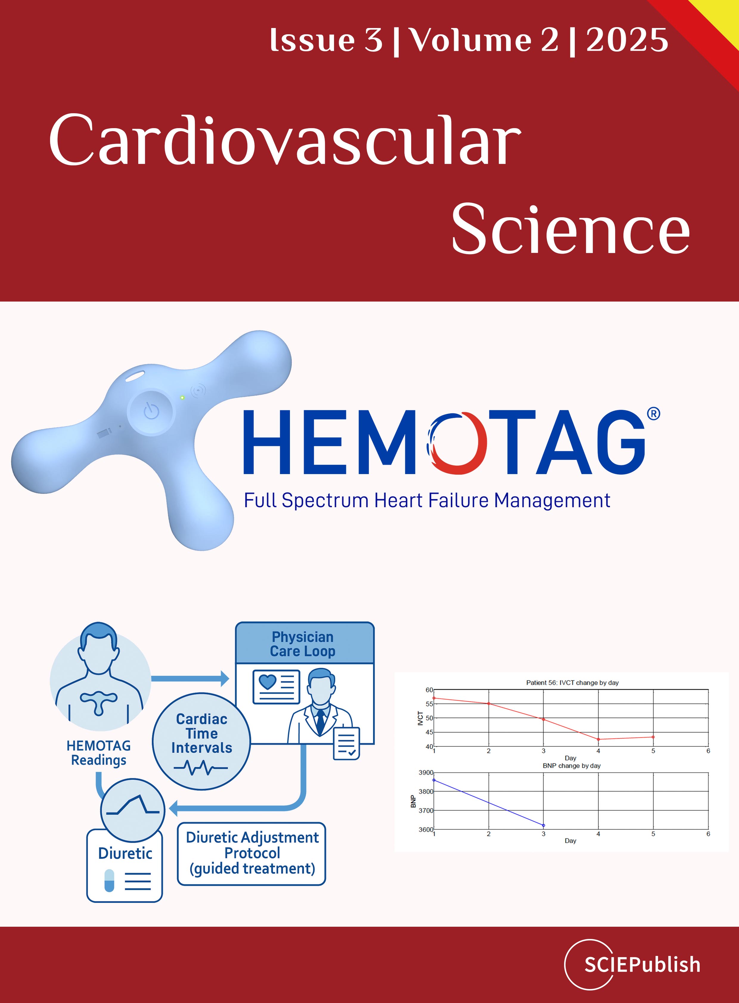This study evaluated the clinical utility of the HEMOTAG™ recording device—A non-invasive, wearable system that measures cardiac time intervals (CTIs)—in managing patients with acutely decompensated heart failure (ADHF). The prospective, single-center study enrolled 105 patients, including those hospitalized with ADHF and a control group with non-HF-related conditions. Daily measurements of isovolumetric contraction time (IVCT), a key CTI marker, were collected using the HEMOTAG device and compared with NT-proBNP levels obtained on admission and day 3. Among ADHF patients, IVCT decreased in parallel with NT-proBNP levels, indicating volume status improvement with therapy. In contrast, the control group showed no significant change in IVCT or NT-proBNP. An IVCT ≥ 40 ms demonstrated strong sensitivity and specificity to detect ADHF (NT-proBNP ≥ 1800 pg/mL). These findings suggest that IVCT trends measured by HEMOTAG correlate with short-term treatment response in ADHF and could offer a non-invasive method to guide heart failure management. The technology demonstrated feasibility, safety, and clinical relevance, supporting its potential role in future remote management strategies.