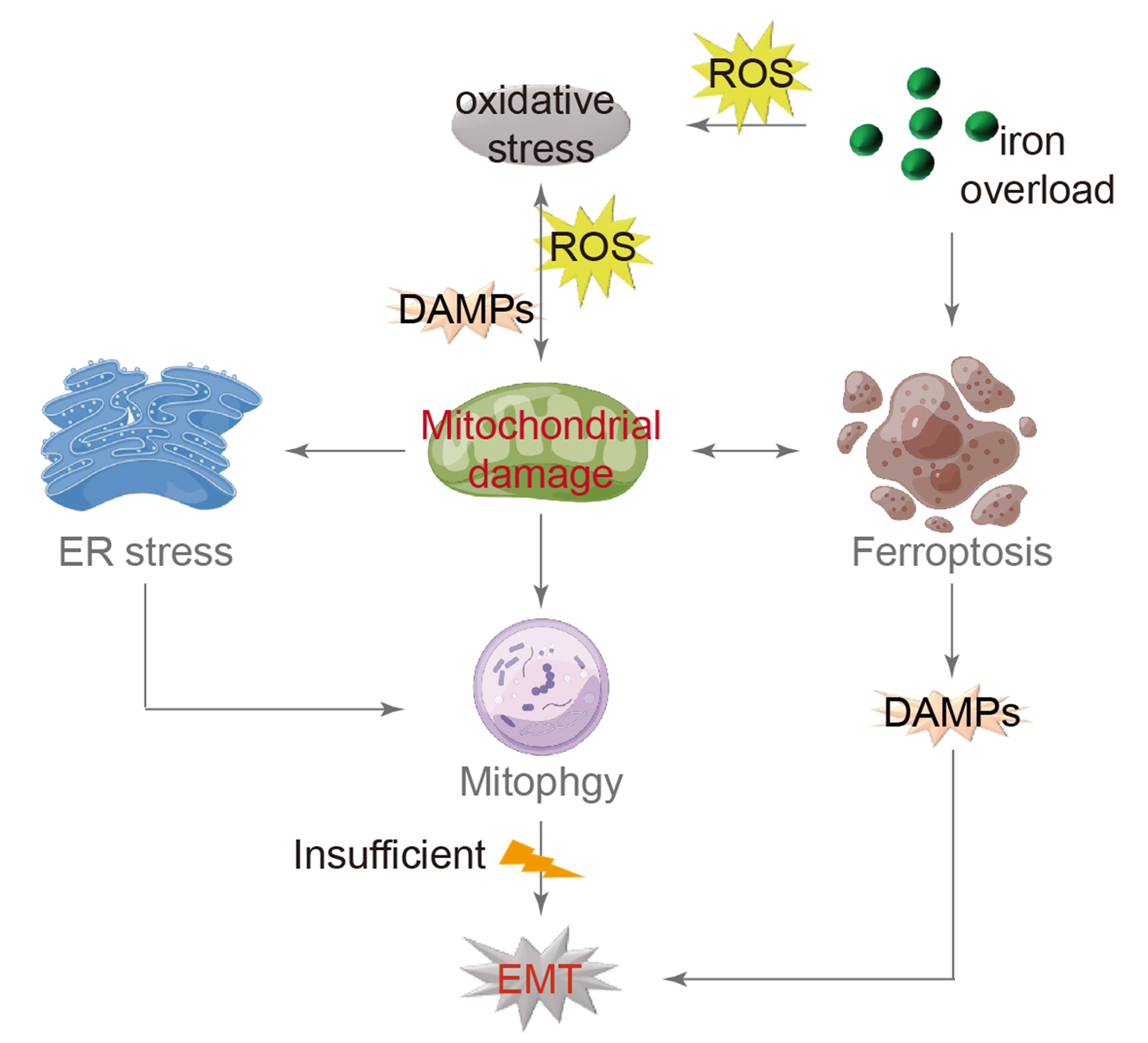 Idiopathic pulmonary fibrosis (IPF) is a type of interstitial pneumonia with an unknown cause that progresses gradually, primarily affecting the elderly. The presence of fibrosis has significant implications for individuals with reduced lung compliance, resulting in decreased quality of life and limited survival. Although the exact mechanism remains unclear, researchers have investigated various factors, such as senescent telomerase replication and abnormal lung stem cell differentiation, to understand the root cause. Extensive research has consistently shown that IPF is closely linked to the dysfunction of alveolar epithelial cells. Current scientific studies on IPF cover a range of aspects including oxidative stress, endoplasmic reticulum stress, mitochondrial damage, and iron-induced apoptosis. By examining these mechanisms, a comprehensive model has been developed that explains the process of IPF. Oxidative stress is identified as the primary trigger, followed by mitochondrial damage as a central component, leading to the mesenchymal transformation of alveolar epithelial cells as the ultimate outcome. This model is expected to serve as a valuable reference for understanding the mechanism of IPF and guiding future drug development efforts.